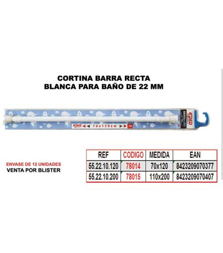 EPID - Tenda bagno barra dritta 22 mm bianco 110x200 55.22.10.CC.200
