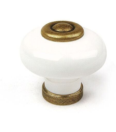 REI - Tanti 4 bottoni rotondi per mobili in porcellana antica in ottone mod.824 ø31mm. i