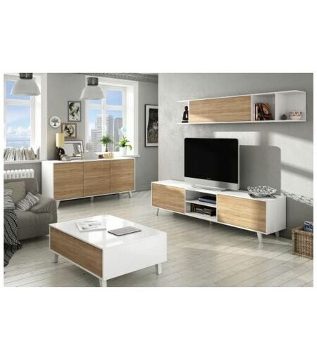 SERIE ZAIKEN Modulo basso 2 ante e ripiano centrale Dimensioni mobile tv cm 180x41x51h Modulo alto pensile con sportello apertura Vasistas. Dimensioni pensile cm 180x25x35h Colore bianco/rovere ...