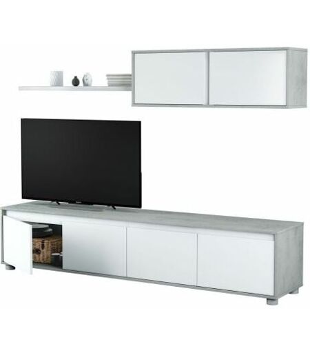 LINEA ALIDA Pannello truciolare melaminico. composta da: mobile TV con 4 ante cm 200x41x43h pensile con 2 ante cm 105x29x35h Mensola cm 95x31x3h Colore bianco/cemento ...
