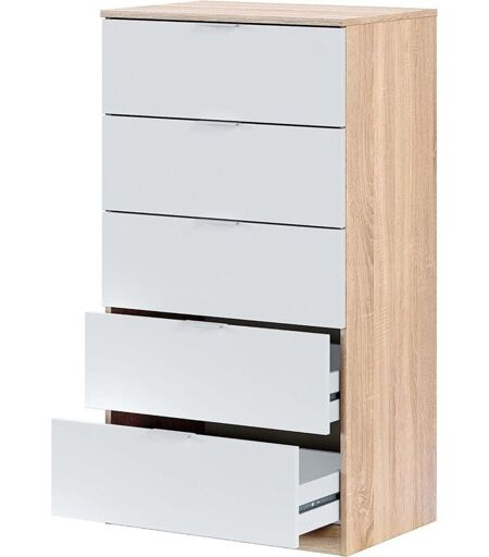 FORES HABITAT S.L.U. Cassettiera Camera da Letto con 5 Cassetti in Legno Comò Moderno Bianco e Rovere