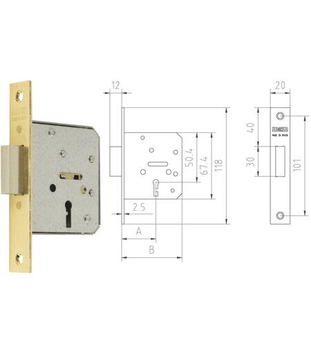 MCM Serratura da infilare in legno 1513-2-3535 bordo dritto in ottone