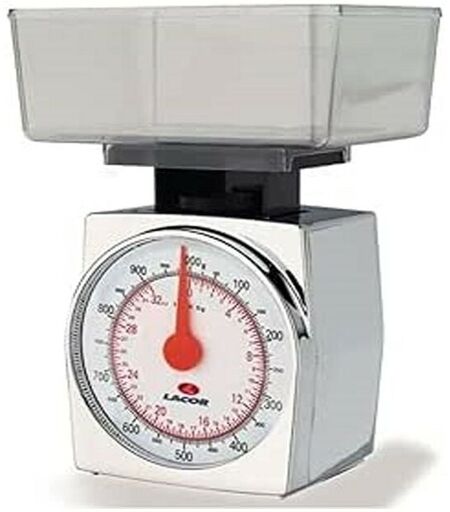 Lacor - Bilancia da cucina in plastica cromata 1 kg con graduazione 5 grammi, Misure 10 x 10 x 10 cm