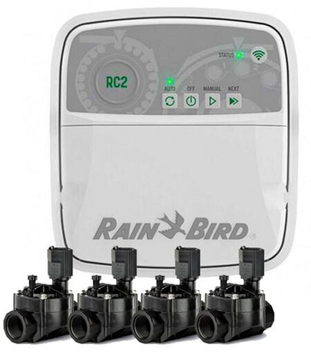 RAIN BIRD - Programmatore automatico di irrigazione Wifi RC2 4 zone interne + 4 Elettrovalvole 100HV 24V da 1''