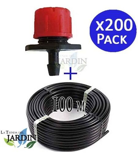 SUINGA Tubo a Goccia, 16 mm x 100 m, colore Nero + 200 Gocciolatori Regolabile 0-70 litri/ora