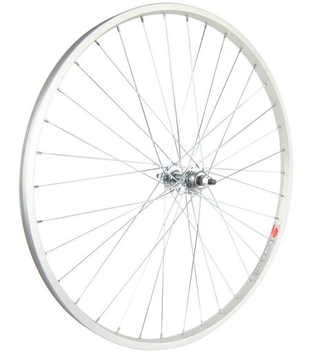 CERCHIO: Cerchio murale semplice in alluminio per v freno colore argento profilo 36 fori 19,3mm interno 24,5mm esterno e 16,1mm altezza. RAGGIO: 36 raggi argento galvanizzati. MOZZO: GURPIL tipo di filettatura del mozzo posteriore per 1 velocità acciaio 36 fori colore argento con asse solido 9,5mm con dadi. ...