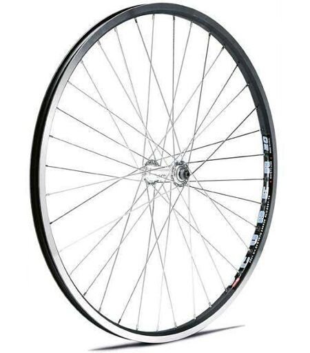 CERCHIO: cerchio semplice in alluminio per v freno colore nero profilo 36 fori 19,6 mm interno 25 mm esterno e altezza 17,6 mm. RAGGIO: 36 raggi argento galvanizzati. MOZZO: GURPIL mozzo anteriore in alluminio 36 fori color argento con QR. ...