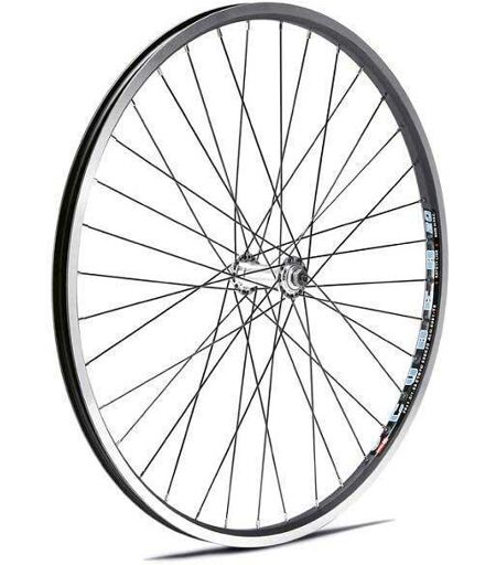 CERCHIO: cerchio semplice in alluminio per v freno colore nero profilo 36 fori 19,6 mm interno 25 mm esterno e altezza 17,6 mm. RAGGIO: 36 raggi neri. MOZZO: GURPIL mozzo anteriore in alluminio 36 fori color argento con QR. ...