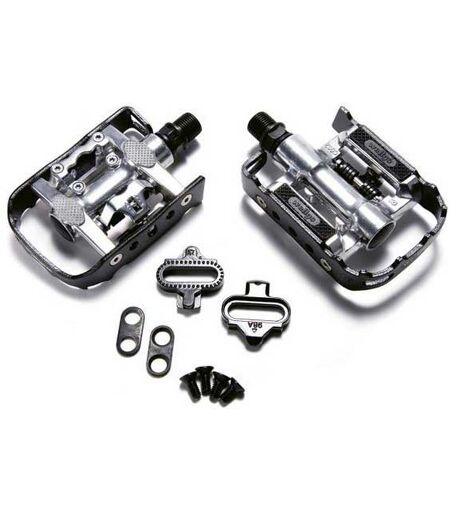 Conquista qualsiasi terreno con sicurezza: pedali MTB WELLGO SPD-C002 a doppia facciaProva il massimo controllo ed efficienza con i pedali WELLGO SPD-C002, progettati per i ciclisti MTB seri che esigono il meglio. Questi pedali a doppia faccia offrono la perfetta combinazione di versatilità e prestazioni, consentendoti di passare facilmente dalle salite agganciate alle discese tecniche.Costruito per il percorso:Realizzati in resistente lega di alluminio, i pedali SPD-C002 sono costruiti per resistere ai rigori della guida fuoristrada. La loro robusta costruzione garantisce prestazioni durature, chilometro dopo chilometro, mentre il design a basso profilo offre un´ampia altezza libera dal suolo per affrontare terreni difficili.Aggancia, accendi:Goditi l´efficienza e il trasferimento di potenza di un sistema senza clip con la compatibilità dell´SPD-C002 con le tacchette SPD (non incluse). Il collegamento sicuro migliora l´efficienza della pedalata, consentendoti di conquistare salite ripide e superare tratti impegnativi con sicurezza.Libertà di adattamento:Il design a doppia faccia offre la flessibilità di un pedale a piattaforma quando necessario. Sia che tu stia percorrendo tratti tecnici o che ti prenda una pausa dall´essere agganciato, l´SPD-C002 offre una piattaforma stabile e confortevole per i tuoi piedi.Fluido e affidabile:Dotati di cuscinetti sigillati di alta qualità, i pedali SPD-C002 offrono una rotazione fluida e affidabile, riducendo al minimo la perdita di energia e massimizzando le prestazioni. La costruzione durevole garantisce prestazioni di lunga durata, mantenendoti in movimento stagione dopo stagione.Pedali WELLGO SPD-C002 - Caratteristiche principali:Design a doppia faccia: compatibile con SPD da un lato, piattaforma dall´altroCorpo in resistente lega di alluminio: costruito per resistere alla guida fuoristrada impegnativaDesign a basso profilo: offre un´ampia altezza libera dal suolo per terreni tecniciCuscinetti sigillati: garantiscono una rotazione fluida e affidabileCompatibile con tacchette SPD (non incluse)Ideale per il ciclismo MTBSpecifiche tecniche:Materiale: corpo in lega di alluminio, asse in acciaio CrMoDimensioni: 100 mm x 98 mm x 18 mmPeso: 380 g (coppia)Colore: neroAggiorna la tua pedalata e sperimenta la differenza con i pedali WELLGO SPD-C002. Ordina il tuo oggi stesso e conquista qualsiasi percorso in sicurezza! ...