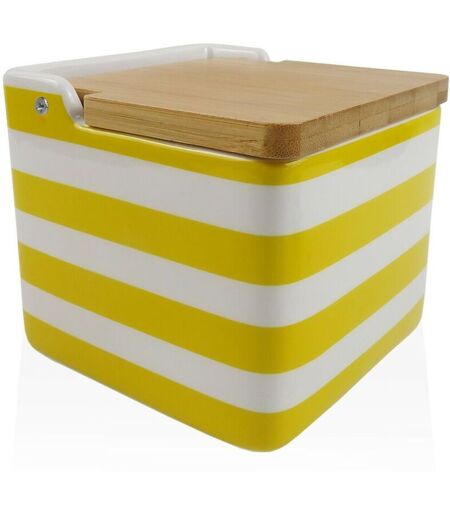 VERSA Portasale con Coperchio Giallo Ceramica Bambù Dolomite Righe 12,2 x 11,5 x 12,2 cm