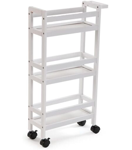 VERSA Carrello Multifunzionale Salvaspazio in Legno bianco 3 Ripiani 4 Ruote per Casa Ufficio Cucina Bagno ripostiglio organizzato in poco spazio