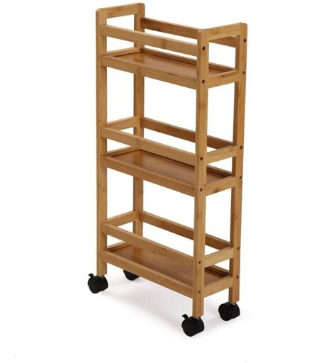 VERSA Carrello Multifunzionale Salvaspazio in Legno naturale 3 Ripiani 4 Ruote per Casa Ufficio Cucina Bagno ripostiglio organizzato in poco spazio