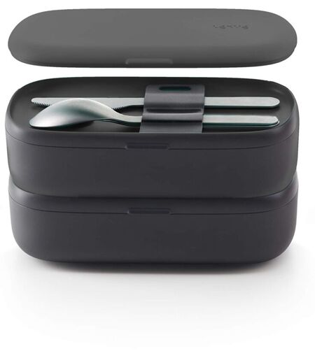 NONE Lékué Porta Pranzo, Nero, 19x10x11 cm, Posate incluso