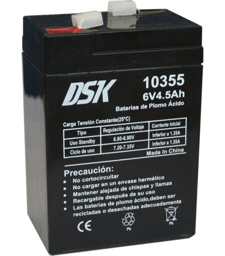 DSK 10355 - Batteria al piombo sigillata agm ricaricabile da 6V 4,5 Ah. Ideale per allarmi domestici e industriali, giocattoli elettrici, recinzioni,