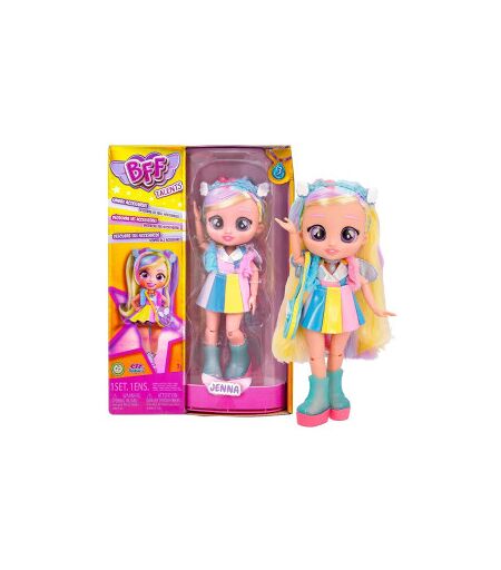 Con le BFF, i bambini si divertiranno a scoprire gli accessori sorpresa, creare outfit originali e look per le loro bambole. Inoltre, potranno stimolare la loro immaginazione creando tantissime storie con i loro amici; Possono anche scambiare le bambole tra loro per completare la collezione. Le BFF sono tutte stilose ed hanno accessori super cool. Jenna e' vestita come un'attrice alla moda. Jenna ha un corpo articolato che si puo' mettere in varie pose. Inoltre, ha occhi effetto cristallo e capelli lunghi colorati. Apri e scopri il suo guardaroba con piu' di 9 sorprese: 2 capi d'abbigliamento, una borsa, un accessorio per capelli, un paio di scarpe, calzini e una collana. Giocare con le bambole consente ai bambini di sviluppare empatia e compassione, oltre a migliorare la loro attenzione sociale, la comunicazione e il senso di responsabilita', anche se giocano da soli. Grazie ai prodotti eccellenti e ai valori della serie, potranno sviluppare l'immaginazione e le capacita' motorie, sociali ed emotive in modo divertente. Attraverso il gioco impareranno alcuni valori morali e allo stesso tempo si divertiranno un mondo. Nella confezione troverai: 1 Bambola BFF S3; 2 x Capi d'abbigliamento; 1 x Borsa; 1 x Accessorio Capelli; 1 x Paio di Scarpe; 1 x Paio di Calzini; 1 x Collana ...