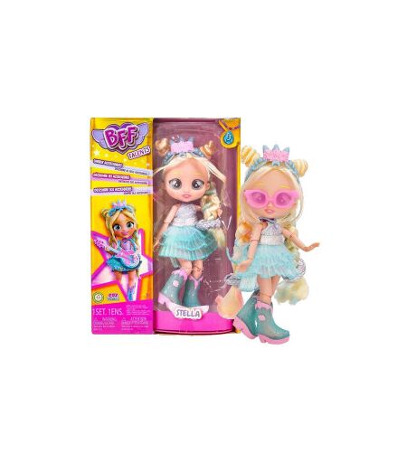 Con le BFF, i bambini si divertiranno a scoprire gli accessori sorpresa, creare outfit originali e look per le loro bambole. Inoltre, potranno stimolare la loro immaginazione creando tantissime storie con i loro amici; Possono anche scambiare le bambole tra loro per completare la collezione. Le BFF sono tutte stilose ed hanno accessori super cool. Stella e' vestita come un'attrice alla moda. Stella ha un corpo articolato che si puo' mettere in varie pose. Inoltre, ha occhi effetto cristallo e capelli lunghi colorati. Apri e scopri il suo guardaroba con piu' di 9 sorprese. Giocare con le bambole consente ai bambini di sviluppare empatia e compassione, oltre a migliorare la loro attenzione sociale, la comunicazione e il senso di responsabilita', anche se giocano da soli. ...