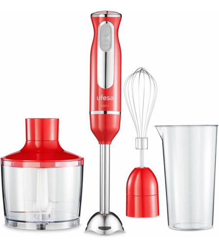 Ufesa Minipimer Frullatore a Immersione, Tritatutto, Potenza 600 w, Accessori Inclusi, Piede Smontabile, Lame ad alta Efficienza, Funzione Turbo, bpa Free,