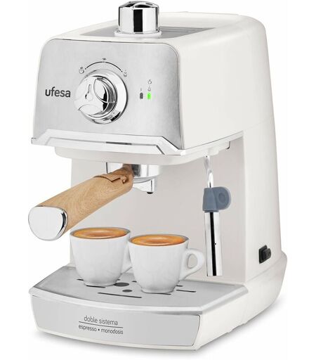Ufesa CE7238 Cream Macchina Caffè Espresso e Cappuccino, Pressione 20 bar, 2 modalità: caffè macinato o dose singola, Vaporiera Regolabile, Serbatoio 1.2L,