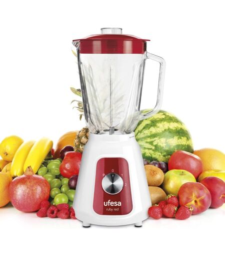 Ufesa BS4717 ruby red Frullatore da tavolo, 500 w di potenza, Caraffa in vetro da 1,5 l, Coperchio con chiusura ermetica, 2 velocità + Pulse, 4 lame in