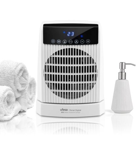 Ufesa Persei - Riscaldatore digitale da 2000 w, IP21, per bagno, 3 livelli di potenza termica/freddo, base oscillante, termostato regolabile, timer 24 ore,