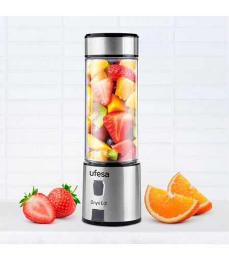 Ufesa Onyx Go, Bottiglia Frullatore Portatile, Tritatutto Multifunzione, Blender Smoothie, 400 ml, Ricarica usb, Tappo Sport, 24x7,5x7,5 cm -