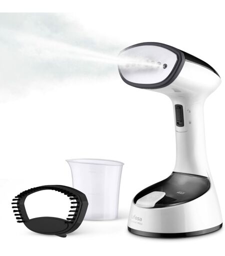 Ufesa Black Mist Ferro da Stiro a Vapore Verticale Pieghevole, Ferro da Viaggio, Compatto, 1470 w, Serbatoio 150 ml, Elimina pieghe, Odori e Disinfetta,