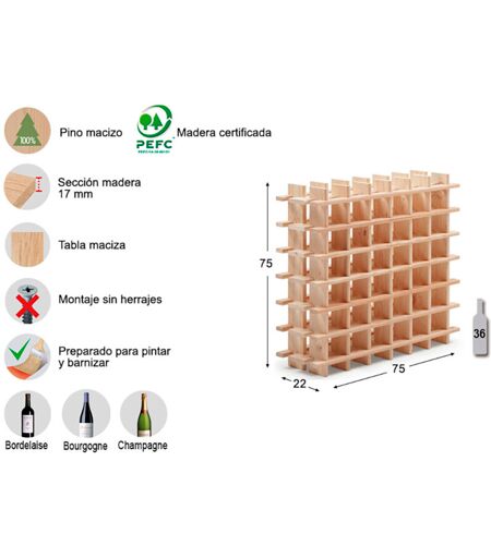 Portabottiglie evolutivo Rioja per 36 bottiglie in pino massiccio astigarraga ...