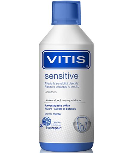 VITIS SENSITIVE - Descrizione VITIS® sensitive collutorio è un prodotto di uso quotidiano indicato nei casi in cui è necessaria un'azione desensibilizzante e un effetto di protezione di denti e gengive. Modalità d'uso Dopo aver lavato i denti, fare gli sciacqui con 15 ml di VITIS® sensitive colluto… ...