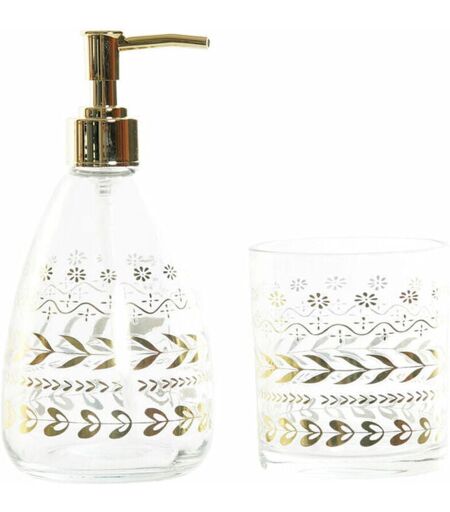 DKD HOME DECOR Set da Bagno Dorato Cristallo ABS Plastica Foglia della pianta 9 x 9 x 18 cm
