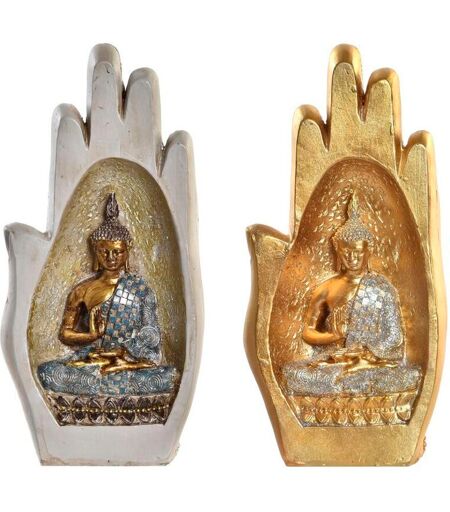 DKD HOME DECOR Statua Decorativa Grigio Dorato Buddha Resina (10 x 7,2 x 20,9 cm) (2 Unità)