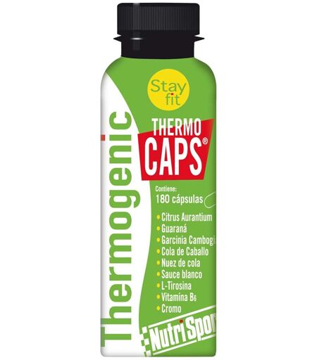Cos'è THERMOCAPS®?È un romanzo termogenico che aumenta la combustione delle calorie e la riduzione del tessuto adiposo grazie alla sua formulazione basata sugli estratti vegetali.Aumenta la termogenesi (aumento del corpo T °) e genera maggiore bruciatura calorica durante il giorno. È adatto a prendere qualsiasi attività fisica del giorno, perché non è essenziale per combinarlo con ,esercizio per la sua efficacia.Grazie alla sua formulazione favorisce anche la regolazione della glicemia, impedisce la conversione dei carboidrati in grasso e ha un effetto diuretico per evitare la ritenzione dei liquidi:Guarana: È un contributo di caffeina naturale di rilascio prolungato che permette, attraverso la stimolazione del sistema nervoso centrale, di attivare il metabolismo dei grassi.Insieme alla caffeina presente, aumenta la termogenesi e le calorie che bruciano.Garcinia cambogia: estratto ricco di HCA (acido idrossicitico) che è stato dimostrato di inibire la conversione di carboidrati in grassi in aggiunta alla regolazione del,appetito.N Acetil L Tyrosina: Aminoacido con attività sul sistema nervoso centrale (precursore dei neurotrasmettitori), oltre alla sua attività sulla tiroide (attivando il metabolismo).Citrus Aurantium: estratto di arancia amaro con un effetto stimolante dovuto al suo contenuto di sinne, che ha una sinergia con la caffeina aumentando ,effetto termogenico del prodotto.Dado della coda: estratto del dado di cola con attività stimolante grazie al suo contributo di caffeina naturale.Salice bianco: La corteccia del Salice Bianco (Salix Alba) è ricca di salicina che dà origine ad acido salicilico una volta assorbita dal corpo. Ha proprietà analgesiche, antipiretiche e anti infiammatorie ed è stato dimostrato di migliorare ,effetto termogenico in combinazione con estratti di stimolanti.Coda del cavallo: estratto con effetto diuretico.Vitamina B6: Vitamina essenziale nel metabolismo energetico del corpo.Chrome: Regola la glicemia evitando la sensazione di appetito.Come usare:Prendere 3 a 6 capsule al giorno.Raccomandazione NutriSport:Combinare con FatBurners®SHOT. ...
