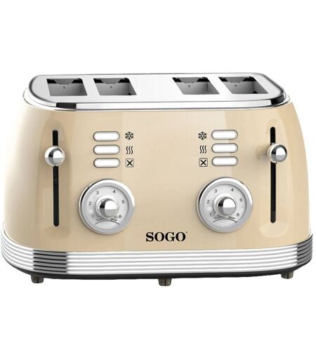 SOGO HUMAN TECHNOLOGY - Tostapane 4 fette Spia luminosa, Funzione toast Beige, Metallico