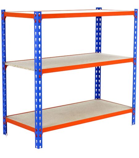 SIMONRACK Scaffale Portaoggetti, 1000x900x300 mm, 3 Ripiani in Legno, Portata 150 kg per Ripiano, Scaffale da Garage, Blu/Arancione/Legno – Maderclick