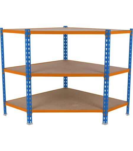 Scaffale angolare in metallo senza viti con vassoi di agglomerato, colore BLU/ARANCIONE/LEGNO.Ha 3 ripiani. Include vassoi di truciolato e 5 piedi di plastica bianca. Le dimensioni di questo scaffale sono (altezza x larghezza x fondo): 900x900x500 mm. Ha 6 longheroni corti da 500 mm ciascuno e 3 longheroni frontali da 720 mm ciascuno. Per maggiori dettagli in termini di dimensioni vedere la seguente immagine (piano dall'alto): www.simonrack.com/fotos/MCLICKCOR35090ANTMADIM.jpg Ha una capacità di carico di 200 kg per scaffale, certificato a punto di flessione. Non traballa e non necessita di ancoraggio al muro. Montaggio facile e veloce senza viti, con sistema click. Manipolazione senza rischi, senza spigoli. Ideale per qualsiasi rincon casa, officina o ripostiglio. Prodotto fabbricato in Spagna. ...