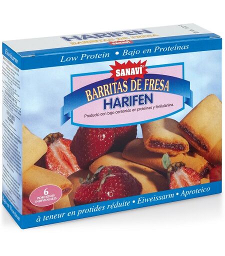 HARIFEN SNACK ALLA FRAGOLA - Descrizione Prodotto dietetico a basso contenuto di proteine e fenilalanina, e con quantità controllate di sodio e potassio. Indicate nell'alimentazione di persone affette da insufficienza renale cronica, fenilchetonuria e altre aminoacidopatie. Ingredienti Ripieno di f… ...