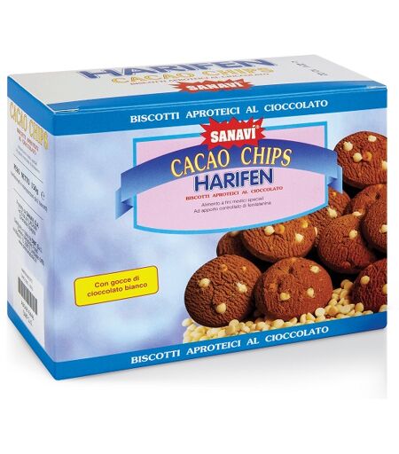 HARIFEN Chips cacao bianco - Alimento dietetico preparato con ingredienti che hanno consentito di ottenere biscotti con un apporto ridotto di proteine, sono indicati nell'alimentazione di: pazienti affetti da insufficienza renale, aminoacidopatie, tra cui fenilchetonuria. Ingredienti Fecola di pata… ...