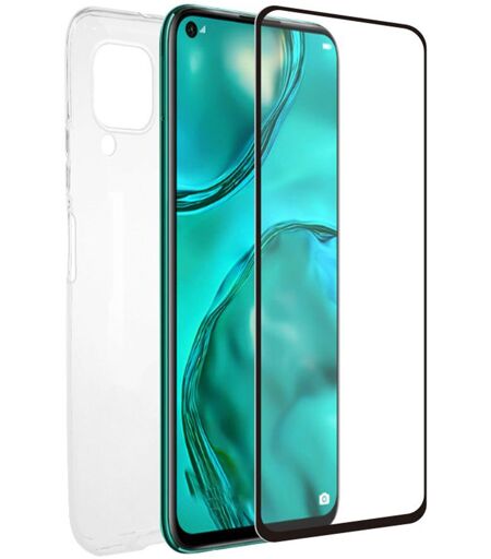 Muvit Custodia Per Telefono Pack Huawei P0 Lite Case Glass Soft And Tempered Glass Silicone Clear / Black One Size