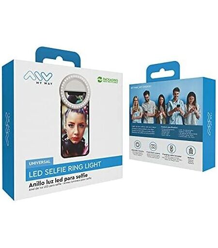 myway selfie led light ring whiteLed light ring per cellulare con batteria ricaricabile. Per selfies, foto, incontri o chat. Lascia che il tuo lavoro e la tua vita siano ciò che vuoi. DESCRIZIONE Peso: 1.5oz/42g Dimensione : Lunghezza 85mm X Larghezza 85mm Colore: White Quantità di lampadine LED: 36 PCs Batteria al litio : 250mAH - 3.7V, ricaricabile, 2 - 4 ore di autonomia Uscita massima: 3W Tensione di carica : DC 5V Indice di resa cromatica: ≥95% Luminosità : 5000k-7000k Compatibile con: IOS e Android , PRODUCT DETAILS Color Blanco Type of producto Light Led Subtype of producto Led Selfie Light . ...