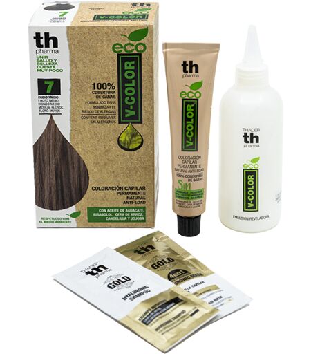 Tinta per capelli con oli vegetali - per un aspetto naturale! Non hai più bisogno di andare dalla parrucchiera per un colore a lunga tenuta e un aspetto radioso, poiché puoi farlo da solo con la tintura per capelli della marca TH Pharma – comodamente da casa tua! Il set include tutto il necessario per la colorazione dei capelli, che è facile ed efficace, e il risultato è un aspetto naturale e una copertura dei capelli bianchi. Il colore è privo di ammoniaca e allergeni, riducendo così il rischio di allergie e donando ai tuoi capelli lucentezza e morbidezza. La sua formula contiene ingredienti a base di erbe che aiutano a proteggere le fibre capillari e a mantenere un colore vibrante a lunga durata, fornendo allo stesso tempo sfumature intense, perfette e naturali. Nella tintura si nascondono: jojoba, bisabololo, olio di avocado, cera di riso e cera di candelilla Per un'eccezionale tonalità di capelli biondo medio direttamente dal comfort di casa! Perché scegliere la tintura per capelli della linea ECO V-COLOR di TH Pharma? è senza ammoniaca, è ecologica, assicura lucentezza e morbidezza ai capelli, contiene profumi senza allergeni, offre una copertura completa dei capelli grigi, con ingredienti vegetali, con una formula studiata per ridurre le allergie. Nella confezione trovi tutto il necessario per la tintura dei capelli a casa! Nella confezione è possibile trovare: ECO V-COLOR Colour Developer Lotion - progettato specificamente per l'uso con la tintura per capelli ECO V-COLOR, contiene perossido di idrogeno. Tintura ECO V-COLOR - colore naturale senza ammoniaca e con ingredienti vegetali. Shampoo GOLD con acido ialuronico e burro di karité (10 ml) - shampoo restitutivo per capelli secchi, colorati e decolorati. Maschera per capelli GOLD con acido ialuronico e burro di karité (10 ml) - una maschera nutriente per capelli secchi, colorati e decolorati, che prolunga la durata del colore e restituisce la naturale lucentezza ai capelli. Istruzioni per l'uso con i guanti inclusi. ...
