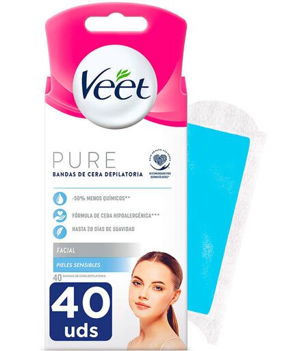 Veet Pure Wax Bands pelle sensibile viso 40 u