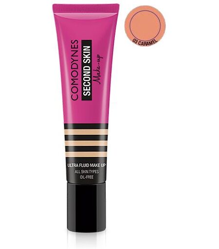 COMODYNES - SECOND SKIN FOUNDATION - 03 CARAMEL - Descrizione Fondotinta/base leggera facile da stendere e soprattutto non grassa per evitare l'ostruzione dei pori. Adatto a tutti i tipi di pelle in particolare quella mista e grassa. Opacizza la lucentezza. Formulato con estratto di Polyporus off… ...