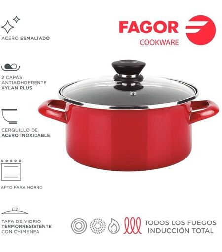 Fagor Pentola Optimax + Coperchio Rosso Acciaio aisi 430 Ø24x13cm