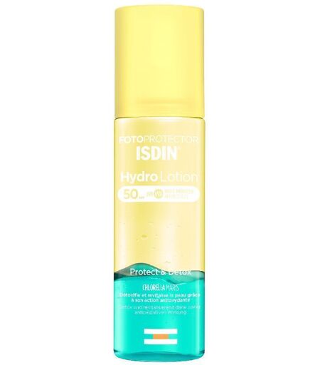 Isdin Fotoprotector Hydrolotion Spf50 Proiezione Solare CorpoProteggi e detossina la pelle con il fotoprotettore corpo bifasico idratante ad assorbimento immediata Hydro Lotion SPF 50. La sua formula con Chlorella Maris previene l'ossidazione della pelle. Alta protezione Uvb/Uva SPF 50.Benefici:Lozione bifasica oleo-acquosa a doppia azione:PROTEGGE: Alta protezione Uvb/Uva Spf50Detox: Grazie alla sua formula con Chlorella Maris detossina e rivitalizza la pelle dal danno indotto dalla radiazione solare grazie alla sua azione antiossidante.Oltre a proteggere la pelle, apporta un’azione idratante dall’assorbimento immediato e con effetto rinfrescante. Rende la pelle più elastica e luminosa.Dermatologicamente testato. Adatto a tutte le tipologie di pelle. Resistente all’acqua. Non sensibilizzante. Modo d´uso:Prima dell’applicazione, agitare e miscelare per 5 secondi assicurandosi che le due fasi del prodotto si miscelino correttamente. Applicare generosamente sulla pelle asciutta mezz’ora prima dell’esposizione solare. Riapplica ogni 2 ore e dopo aver sudato, nuotato o esserti asciugato. Riducendo questa quantità si riduce il fattore di protezione.IngredientiAqua (Water), Coco-Caprylate/Caprate, Dibutyl Adipate, Undecane, Propanediol, Butyl Methoxydibenzoylmethane, Ethylhexyl Salicylate, Ethylhexyl Triazone, Bis-Ethylhexyloxyphenol Methoxyphenyl Triazine, Diethylamino Hydroxybenzoyl Hexyl Benzoate, Phenylbenzimidazole Sulfonic Acid, Trimethylpentanediol/Adipic Acid/Glycerin Crosspolymer, Tridecane, Glycerin, Sodium Chloride, Phenylpropanol, Parfum (Fragrance), Sodium Hydroxide, Caprylyl Glycol, Tocopheryl Acetate, Disodium Edta, Chlorella Vulgaris Extract, Tocopherol, CI 42090 (Blue 1). ...
