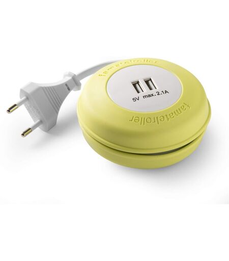 FAMATEL - Roller Arrotolabile con 2 usb 2 metri con materiale in silicone con elevata flessibilità e resistenza giallo, verde, 9 x 9 x 4 cm