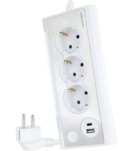 NANO CABLE Nanocable Ciabatta da tavolo con 3 prese con messa a terra e 2 usb con luce, White