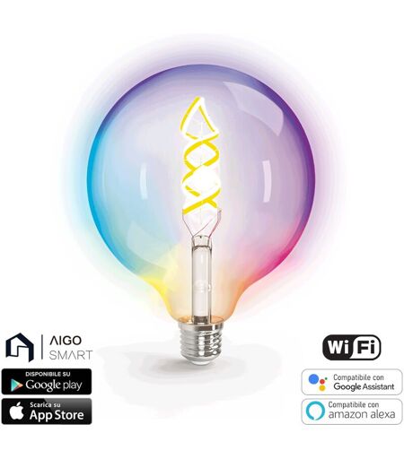 AIGOSTAR - Lampadina Led a Filamento Smart G125 E27 4,9W WiFi rgb + Bianco caldo 2700K luce regolabile e dimmerabile