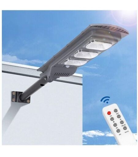 AIGOSTAR Lampione stradale Led 150W Grigio con pannello solare IP65 Bianco freddo 6500K con sensore crepuscolare e di movimento