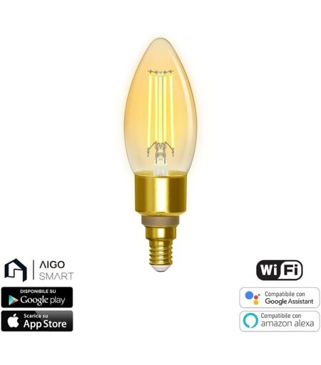 AIGOSTAR - Lampadina Led Vintage a Filamento Smart C35 E14 4,5W WiFi cct luce regolabile e dimmerabile