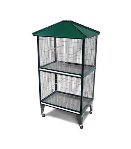 Bird Voler fabbricato in foglio pre -lavato verde, foglio zincato e filo zincato. Questo modello ha un tetto superiore a 4 acque. Ha 2 dipartimenti, in 2 piani diversi. Assemblaggio facile, senza graffette o saldature e con pilastri ricoverati. Ha le ruote per essere facili da trasportare e con vassoi rimovibili per una semplice pulizia. Non include alimentatori o bere fontane. Una volta montato, puoi accedere all'interno da allora, uno dei pannelli che forma il volantino М¬ disponibile in due parti e gli aumenti in basso consentono l'accesso all'interno. Misure: 80 cm x 55 cm x 167 cm ...
