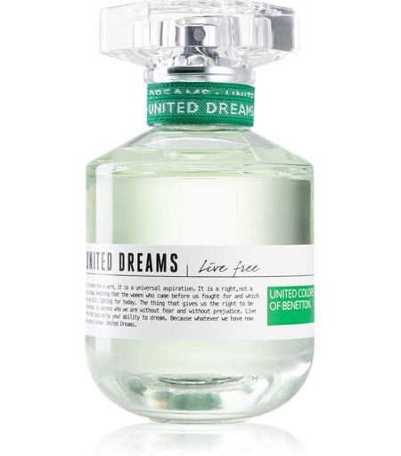 Benetton United Dreams for her Live Free, 80 ml, Eaux de Toilette per donna, Lasciati avvolgere anche tu da questa fragranza che ti metterà di buon umore per tutto il giorno. L’eau de toilette da donna Benetton United Dreams for her Live Free è l’espressione dell’ottimismo e della sensazione di assoluta felicità. profumo floreale profumo fruttato per la donna moderna del XXI secolo profumo adatto all’uso quotidiano ...